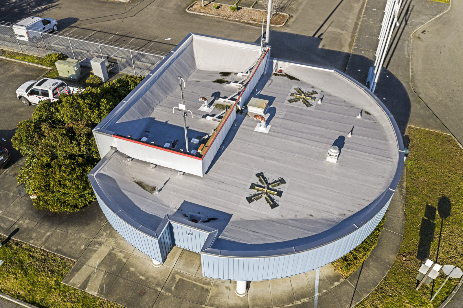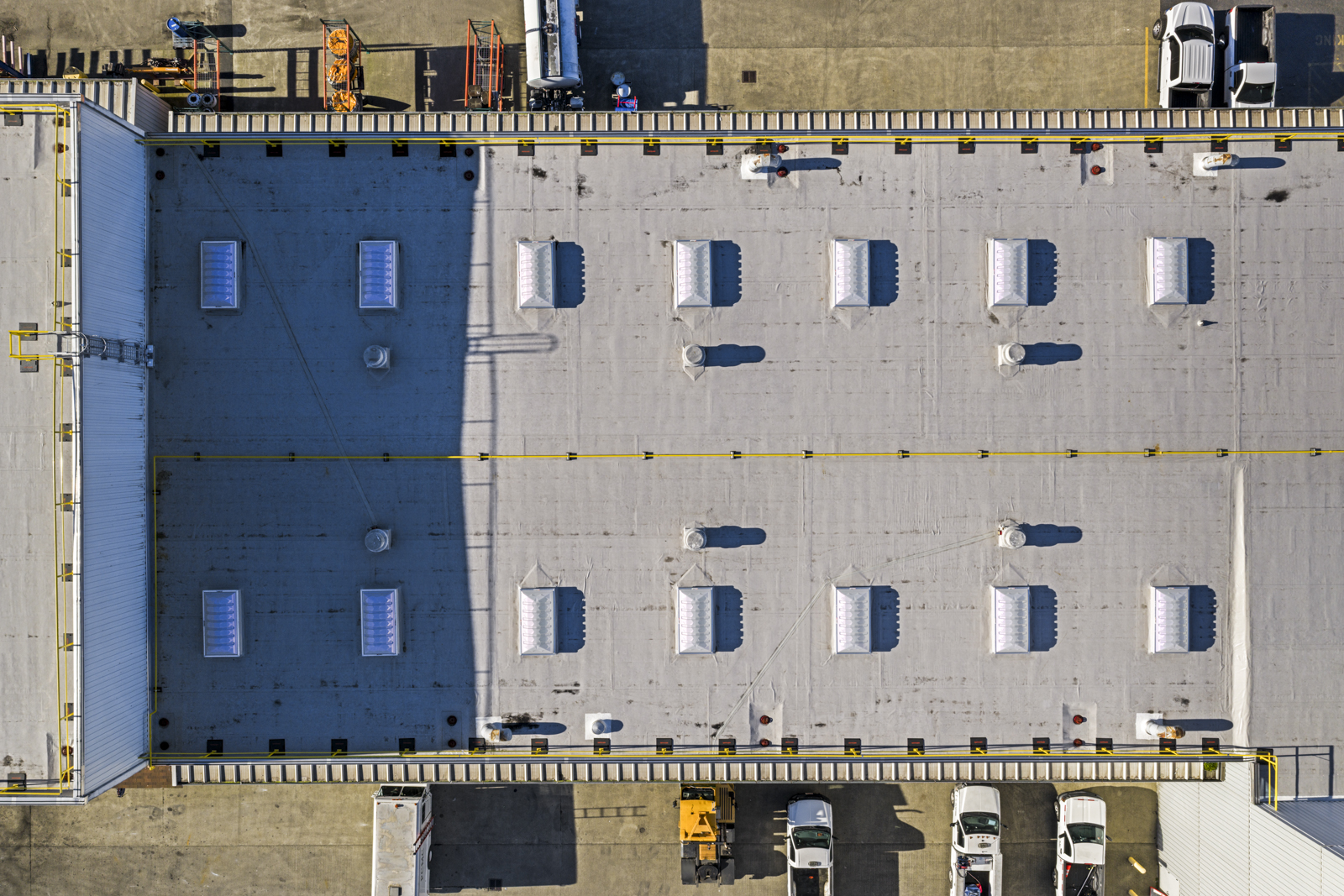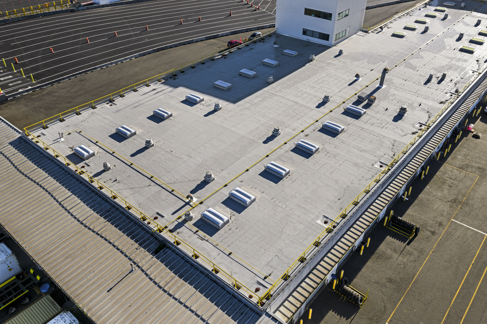 Our team conducted on-site visual reviews across three facility roofs to evaluate overall system performance, identify areas of deterioration, and estimate remaining service life. Observations included membrane conditions, drainage performance, flashing and penetration detailing, and transitions between roof elevations where leaks and failures most commonly occur. These initial field surveys established a baseline understanding of roof condition and informed subsequent investigative efforts.