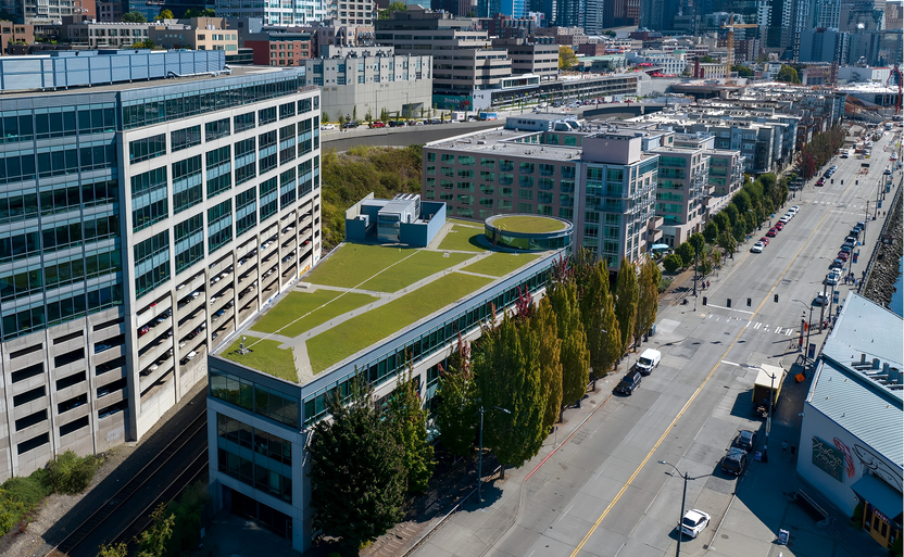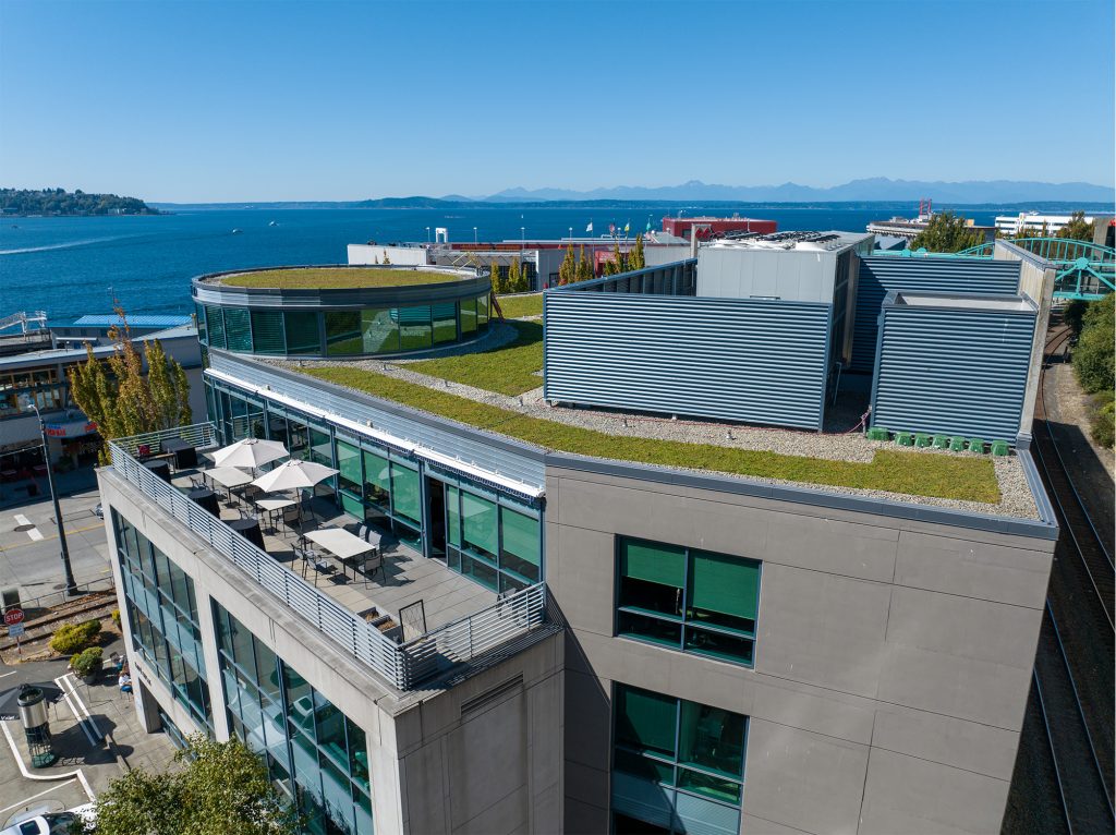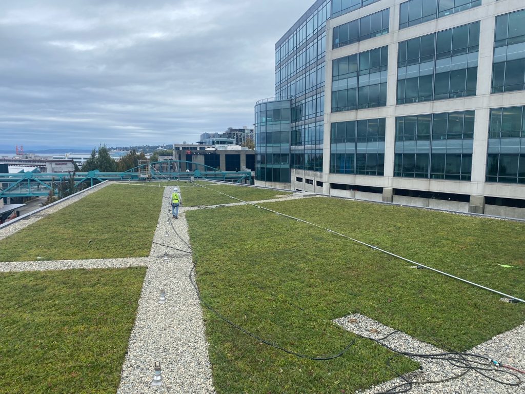 Sustainable building practices are crucial for minimizing environmental impact, enhancing energy efficiency, and fostering healthier urban environments. Green roofing contributes by reducing the urban heat island effect, managing stormwater runoff, and supporting biodiversity. In late 2023, we completed a building envelope roof upgrade at the World Trade Center West along Seattle’s waterfront. By converting a single-ply membrane roof into a fully integrated green roof system, we improved energy efficiency, reduced runoff into Elliott Bay, and contributed to carbon sequestration. Designed with pollinators in mind, this green space reinforces our commitment to sustainable building practices while enhancing the visual appeal for those in higher offices.